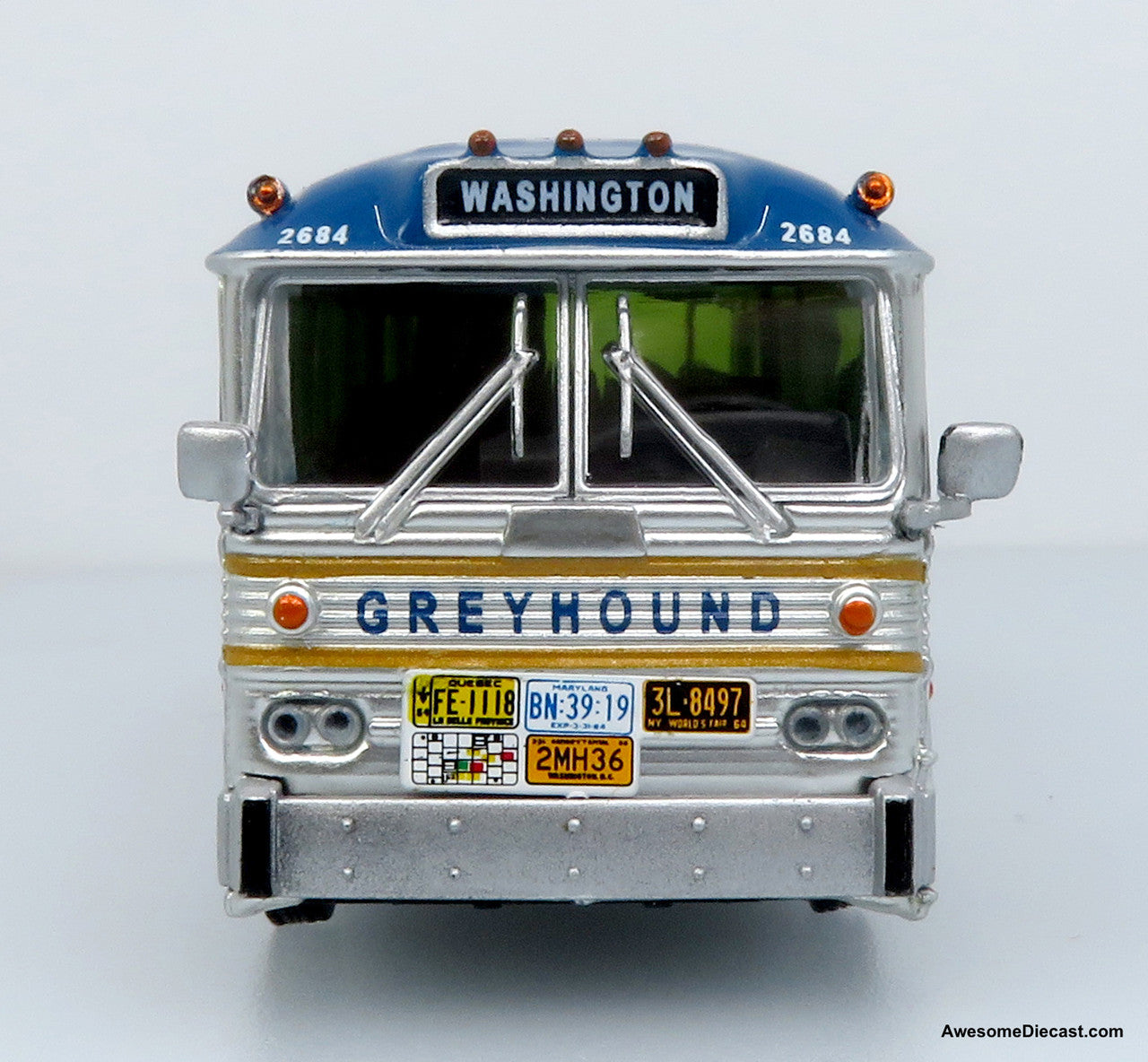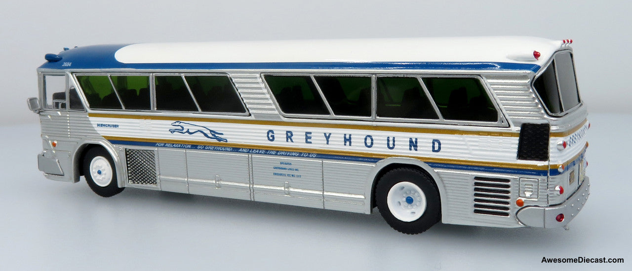 1964 MCI MC-5A Coach: Greyhound Golden Anniversary 1:87 (HO) Diecast Model Bus by Iconic Replicas