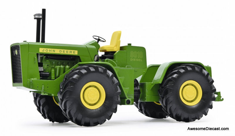 The John Deere company began introducing the 10 Series in 1960. The 8010 was the ""flagship"" of this series. Equipped with a 6-cylinder Detroit Diesel engine with 160 KW in combination with a 9-speed transmission, it was John Deere's first articulated tractor. Due to problems with the transmission, all 100 tractors built were brought back to the Waterloo plant were brought back to the Waterloo plant and rebuilt into the new Type 8020. A single example of the 8010 has survived to this day
