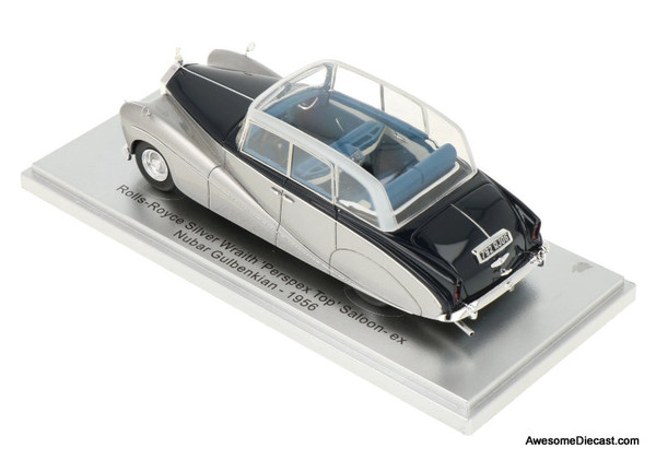 1956 Rolls Royce Silver Wraith "Perspex Top" Saloon, Blue/Silver (Ex Nubar Gulbenkian) 1:43 Resin Cast Model by Kess>