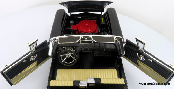 Features opening hood, doors, and trunk with detailed V8 engine and upscale interior