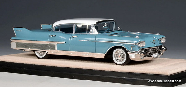 1958 Cadillac Sixty Special, Somerset Blue/Alpine White Roof 1:43 Resin Cast Model Car by Stamp Models