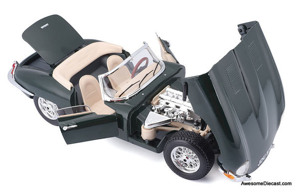 1961 Jaguar E-Type Convertible, British Racing Green 1:18 Diecast Model Car by Burago>