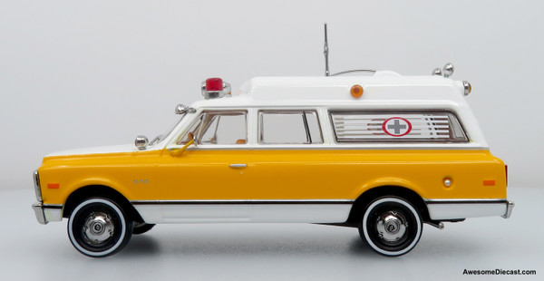 Built with all-diecast metal construction and fitted with precision pad-printed graphics, the model also includes an accurately detailed interior and period-correct rooftop accessories. The classic yellow-and-white paint scheme, emergency lights, and side window markings bring this rescue vehicle to life for any serious emergency or vintage diecast collector.