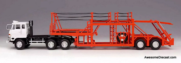 Mitsubishi Fuso Canter Mobile Car Carier Display Truck, White 1:64 Diecast Model Truck by Tarmac Works