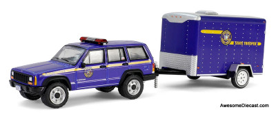 2001 Jeep Cherokee w/Small Cargo Trailer, New York State Police, 1:64 Diecast Model Vehicle by Greenlight>