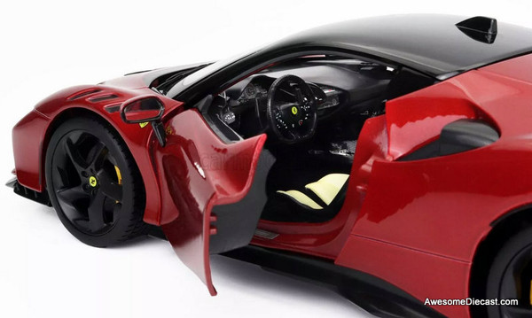 2024 Ferrari SF90 XX Stradale, Rossa Magma Red Metallic 1:18 Diecast Model Car by Burago