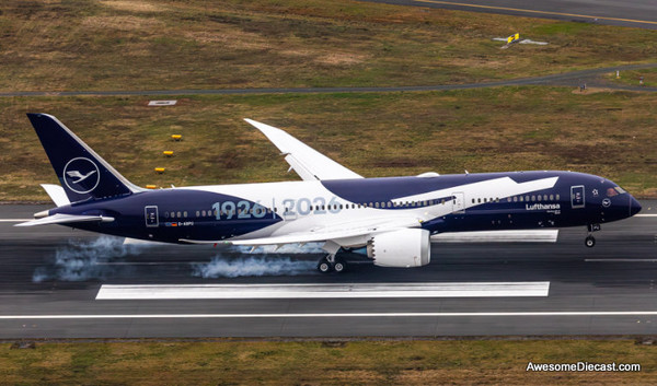Boeing 787-9: Lufthansa (Reg #D-ABPU) 100th Anniversary 1:400 Diecast Model Plane by Gemini Jets