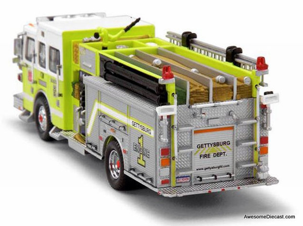 In 2008 the Gettysburg Department celebrated 200 years of service to the community and Code 3 celebrates that illustrious history with this 1/64th scale replica of the beautiful Engine 1-1. The Department protects approximately 25 square miles and a population of 20,000 with 40 volunteer firefighters operating an engine, truck, quint, rescue engine, bls ambulance and traffic unit. The department protects 90% of the Gettysburg National Military Park helping to preserve an important piece of our heritage and history.. The Gettysburg Fire Department is located at 35 North Stratton Street in Gettysburg, PA.