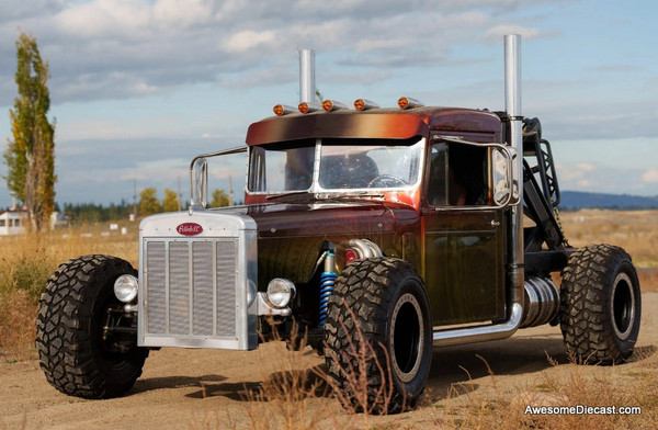 Based on the chassis of a 1983 Chevrolet Suburban, it was fitted with the cabin of a 1966 Peterbilt. Powering this colossus is a 6.2L LS3 V8 engine, with power in the order of 525hp at 5,900rpm and torque of over 550Nm at 4,600rpm. All these numbers are sent to the rear wheels via a three-speed semi-automatic gearbox and a Currie axle with Detroit Locker self-locking. It is also equipped with four-wheel independent suspension, with King adjustable shock absorbers with external reservoir, and disc brakes also on all four wheels.