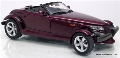 Mint in box. 1 unit available. That nose-in-the-weeds stance, the fat rubber tires, those sexy lines all say it's a one-off custom built rod that money can't buy. Guess again -- the Prowler represents a first in the entire history of the automobile -- the release of a genuine hot rod built by a major car maker. The Danbury Mints model of this ground-breaking street rod, painted in factory-authentic purple, has all of the features that make the original the hottest thing ever to prowl the boulevard. Scale 1:24; 8" in length