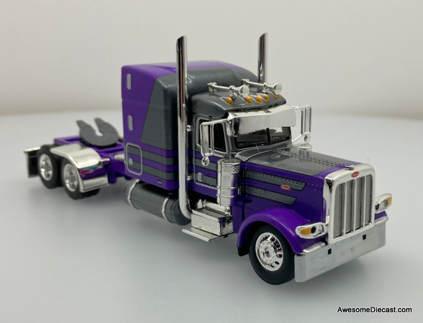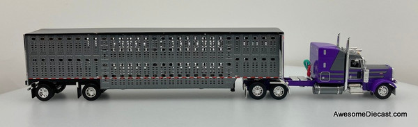 DCP by FG 1:64 Peterbilt 389 Sleeper Tractor w/Wilson Silverstar Spread Axle Livestock Trailer, Gunmetal/Purple