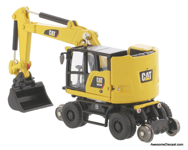 Diecast Masters 1:87 Caterpillar M323F Railroad Wheeled Excavator, Safety Yellow