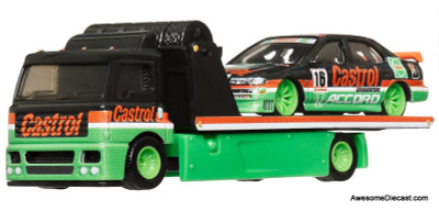 Hot Wheels Premium 1996 Honda Accord & Fleet Street Flat Bed Car Carrier: Team Castrol 1:64 Diecast Model Vehicles by Hot Wheels>