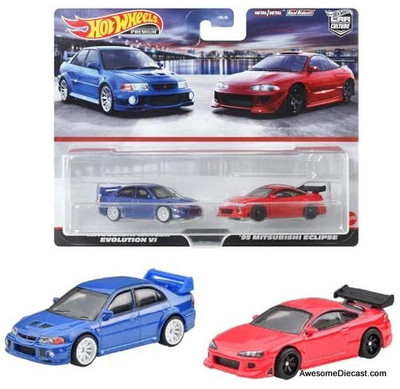 Hot Wheels Premium Mitsubishi Twin Pack: Mitsubishi Lancer Evolution V1 & 1995 Mitsubishi Eclipse 1:64 Diecast Model Cars by Hot Wheels
