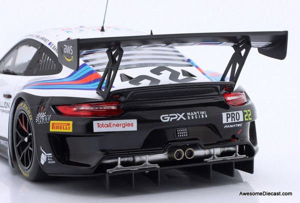 The GPX Martini Racing Team competed in the 2021 Spa 24h race with the Porsche 911 GT3 R in the eye-catching Martini livery. With starting number 22, drivers Earl Bamber, Matt Campbell and Mathieu Jaminet had to retire from the race prematurely after 246 laps.
