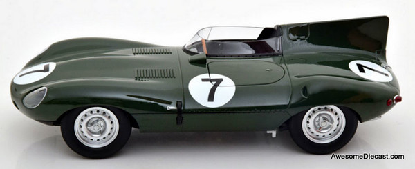 Jaguar D-Type Longnose #7, British Racing Green 24h Le Mans 1955 1:18 Diecast Model Car by CMR
