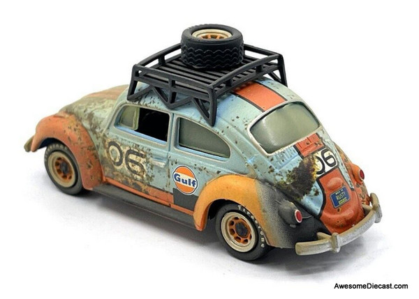 Johnny Lightning 1:64 1970 Volkswagen Beetle Gulf Weathered w/ Rack - Mijo Exclusive>