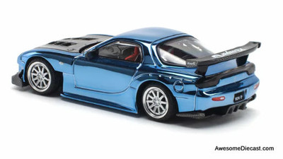 Mazda RX7 RE Amemiya S44-APAxpo2025, Metallic Blue w/ Pink Hood 1:64 Diecast Model Car by Pop Race