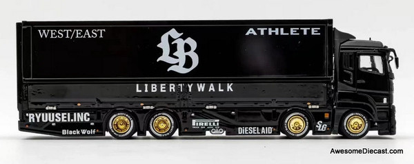 Mitsubishi Fuso Super Great Transporter Athlete, Black: Liberty Walk 1:64 Diecast Model Truck by GCD>