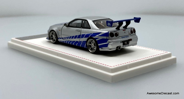 Nissan Skyline GTR R-34, Silver/Blue (Fast & Furious) 1:64 Diecast Model Car by Focal Horizon