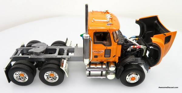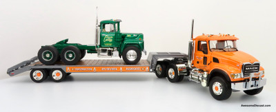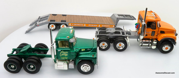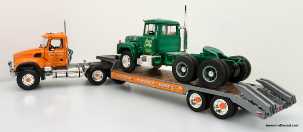 Only One! First Gear 1:34 Mack Granite Tractor & Lowboy Trailer w/ R-Mack Tractor Load: Tonyan Bros Inc / Tenuta Cartage