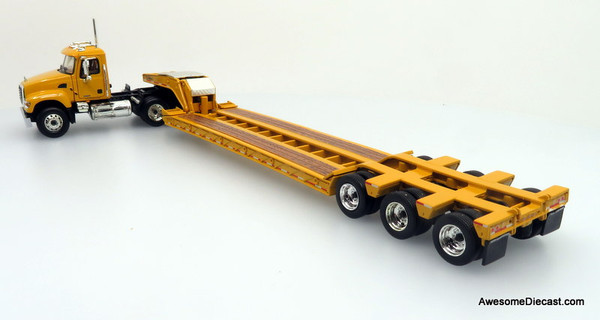 Only One! First Gear 1:64 Mack Granite w/ Tri-Axle Lowboy Trailer, Yellow>