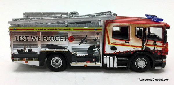 Oxford 1:76 2018 Scania P360 Fire Truck: Humberside Fire & Rescue (Remembrance Day Livery)