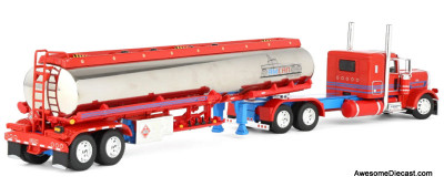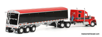 Peterbilt 389 Sleeper Tractor w/53ft Chrome Utility Reefer Trailer, Deep Red/Orange/Yellow: Hurricane Express 1:64 Diecast Model Truck DCP by First Gear