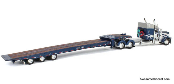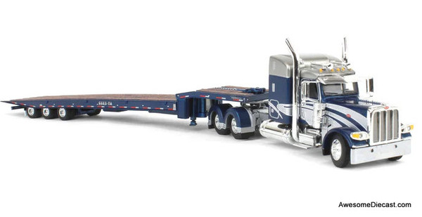 Peterbilt 389 w/48" Mid-Roof Sleeper & Talbert 5553T Traveling Axle Trailer, Blue/Silver 1:64 Diecast Model Truck DCP by FG>