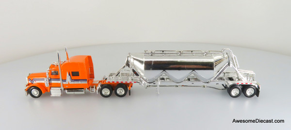 Peterbilt Model 389 Semi-Truck with Pneumatic Tank Trailer - Owner Operator Heartbeat Scheme Orange 1:87 Diecast Model by Trucks N' Stuff>