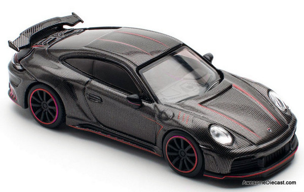 Porsche 992 Stinger GTR, Carbon Edition w/Red Stripe 1:64 Diecast Model Car by Pop Race