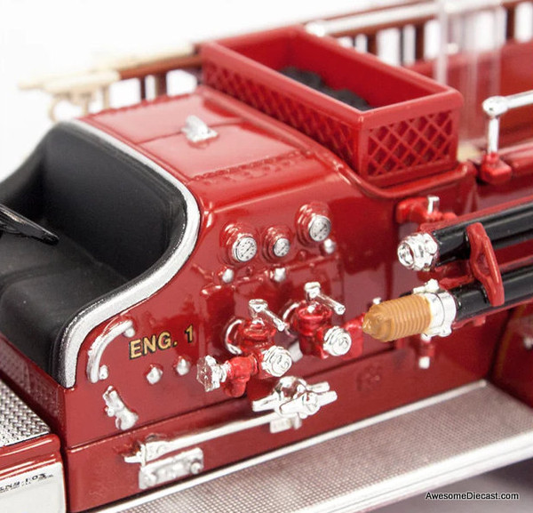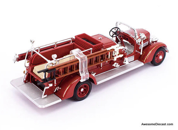The Ahrens-Fox Fire Engine Company was an Ohio-based fire truck manufacturer. The company was founded in 1910 by John P Ahrens and Charles H Fox and built its first motorized fire engine in 1911. By the end of the following year production of horse-drawn fire apparatus ceased completely. Since then, over 1500 pieces of fire apparatus were built until 1977. Ahrens-Fox fire engines were recognizable by the chromed sphere above the pump that held air and smoothed the outgoing pressure fluctuations from the piston pump.