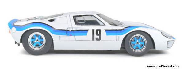 This Ford GT40 has a special history! It was sold to Portuguese driver Emilio Marta who lived in Luanda (Angola, then a Portuguese colony). He contested the local championship for three consecutive seasons with this model and won it in 1973! Returning to Portugal in 1975, Marta continued to drive this GT40 until 1979, when he sold his beautiful American to a Swiss collector. Here it is now in your collection at 1/18.