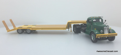 SpecCast 1:50 White WC Semi Truck w/Lowboy Trailer, Green/Yellow
