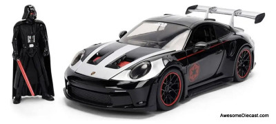 Star Wars Porsche 911 GT3 RS (992), Black/Silver w/Darth Vader Figure 1:24 Diecast Model Car by Jada
