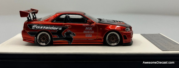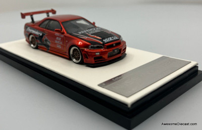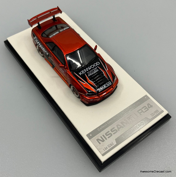 Nissan Skyline GT-R R34, Silver/Blue 1:64 Diecast Model Car by Time Micro